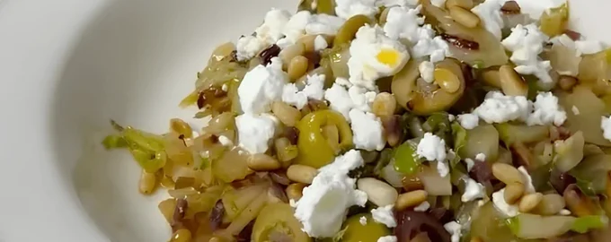 - Sirva quente, cubra com queijo feta esmigalhado e nozes tostadas.