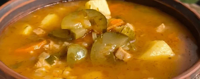 O Rassolnik não é apenas uma sopa, é um símbolo da cozinha ucraniana que pode ser facilmente adaptado ao ritmo de vida moderno. É ideal para o almoço ou para um lanche ligeiro, combinando nutrição e bondade. A coxa de frango dá-lhe um caldo tenro, o arroz ou a perlovka dão-lhe saciedade e os pickles e a pasta de tomate dão-lhe brilho e sabor.